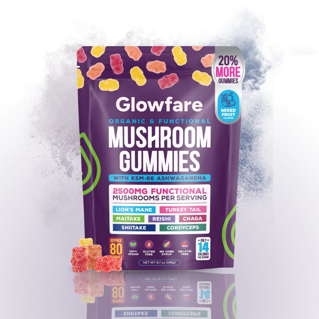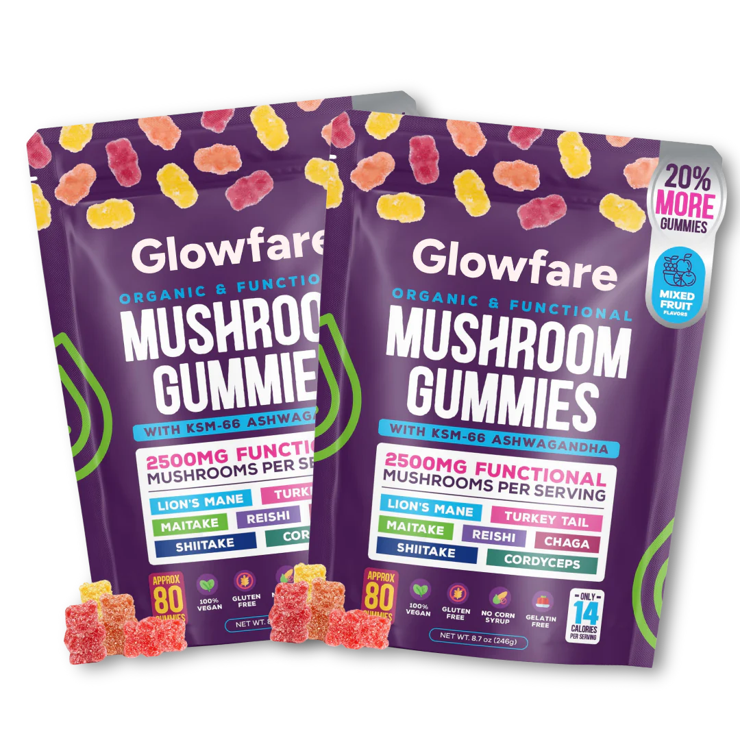 Each gummy contains a blend of Chaga, Maitake, Turkey Tail, Shiitake, Reishi, Cordyceps, Lion’s Mane, and KSM-66 Ashwagandha for a powerhouse of benefits.