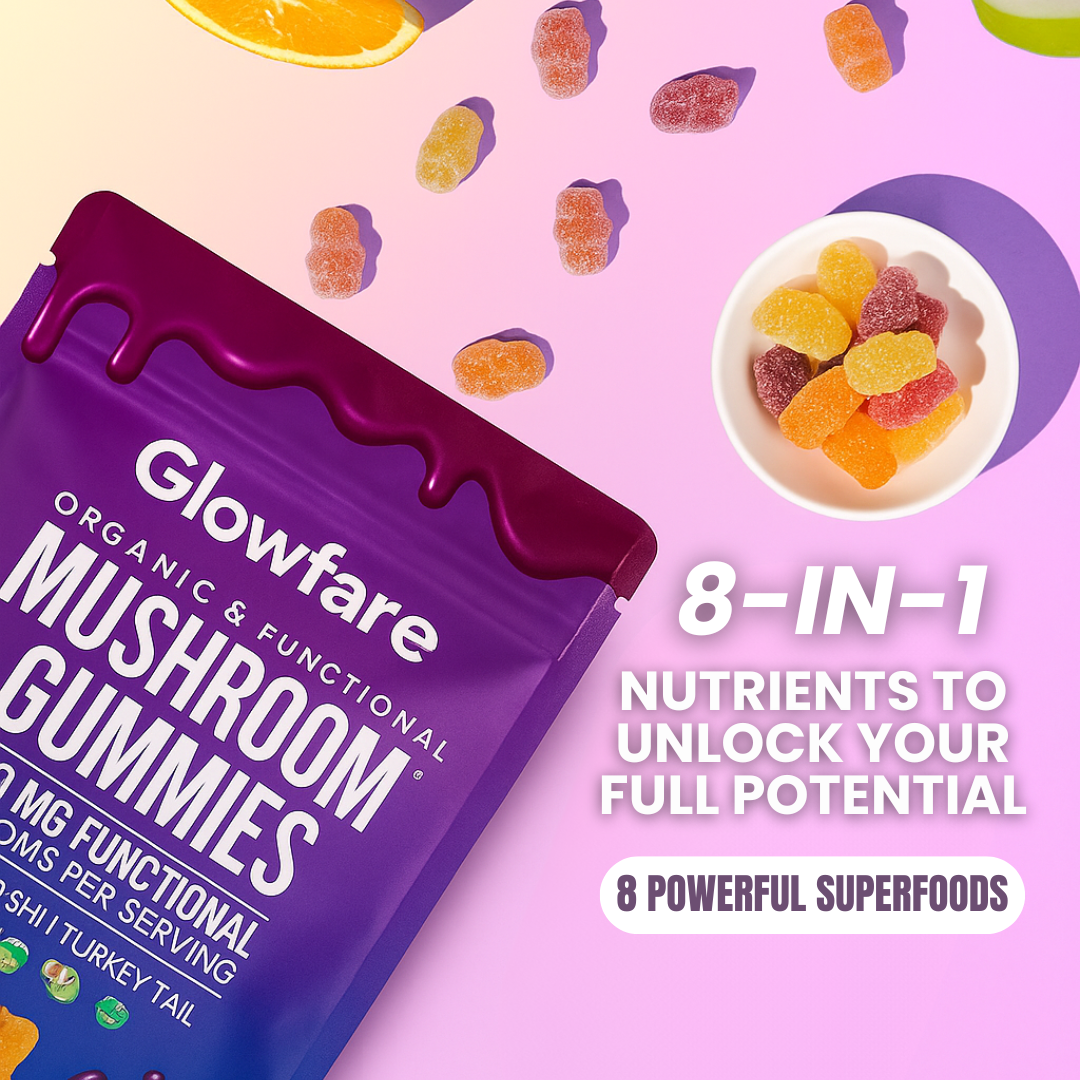 Each gummy contains a blend of Chaga, Maitake, Turkey Tail, Shiitake, Reishi, Cordyceps, Lion’s Mane, and KSM-66 Ashwagandha for a powerhouse of benefits.